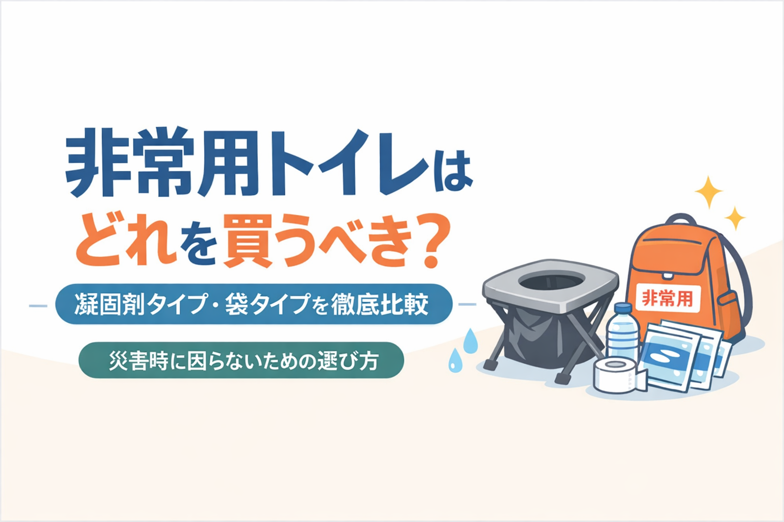 非常用トイレを用意しておきたいと思っても、凝固剤タイプと袋タイプの違いが分からず、どれを買えばいいのか迷ってしまう人も多いのではないでしょうか。
